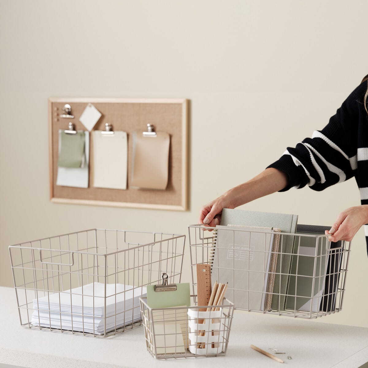 • Åpen trådkurv i beige metall – finnes i flere størrelser.