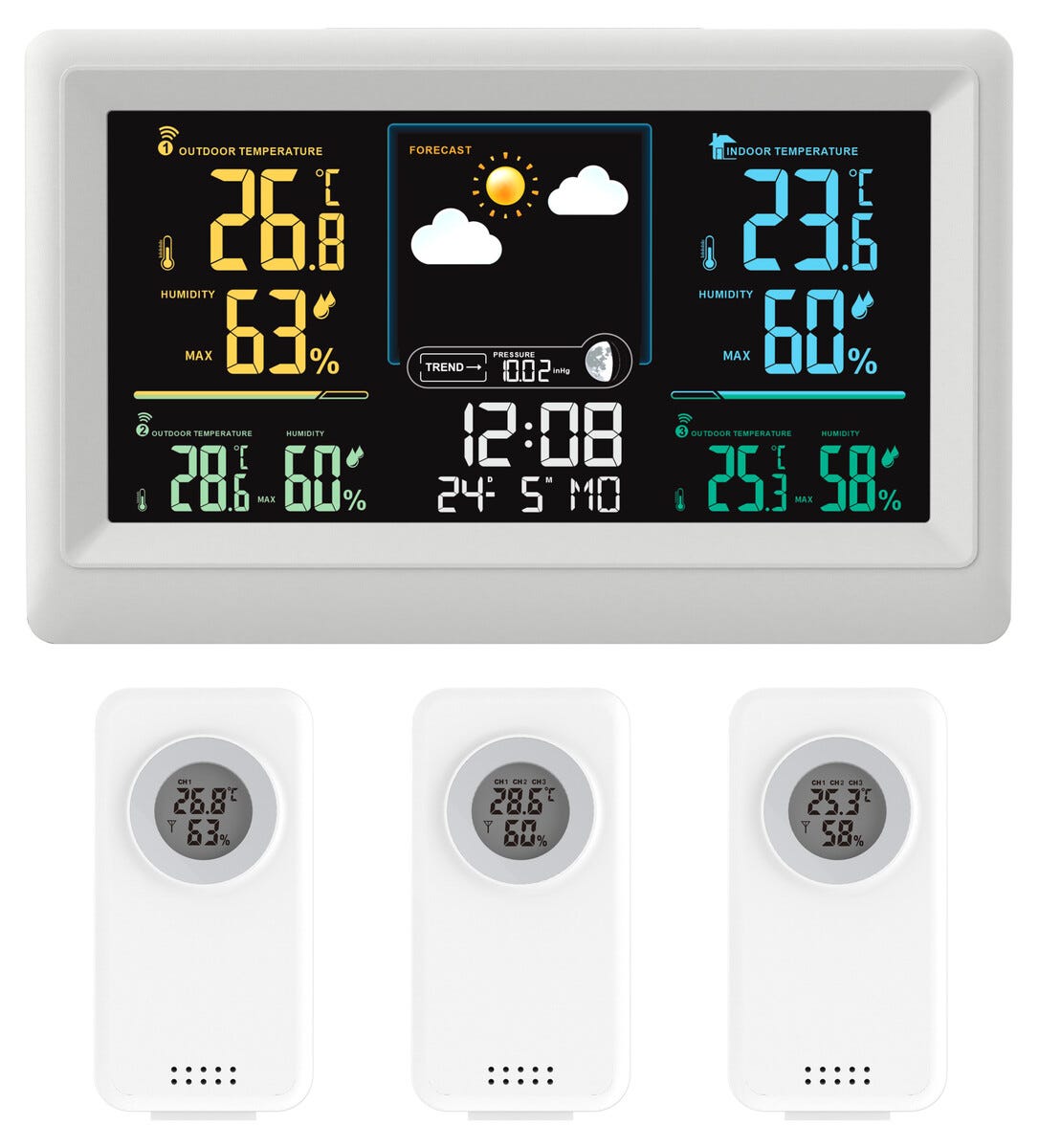 • Trådløs værstasjon med 3 sensorer – til både utendørs og innendørs bruk.