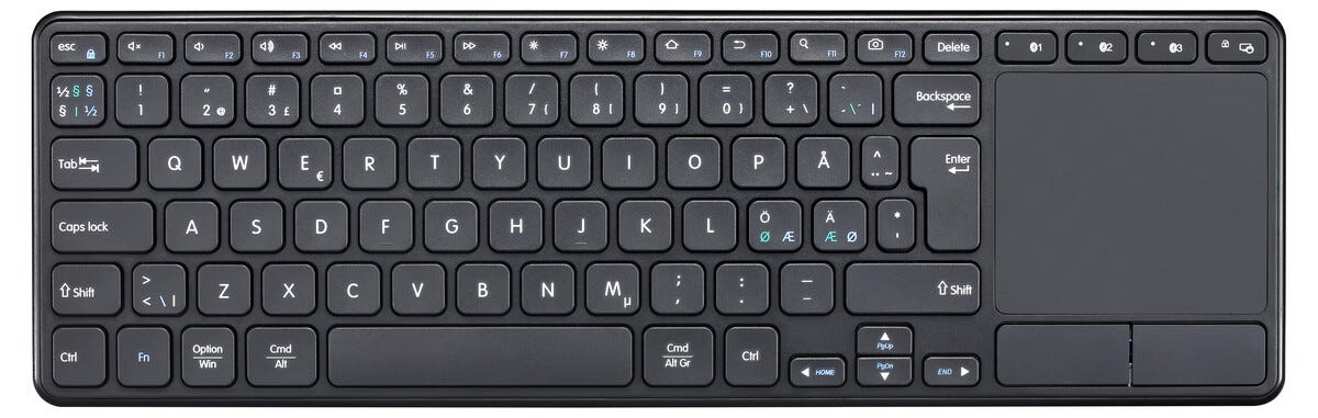 • Exibel trådløst tastatur med touchpad og minne for 3 enheter.