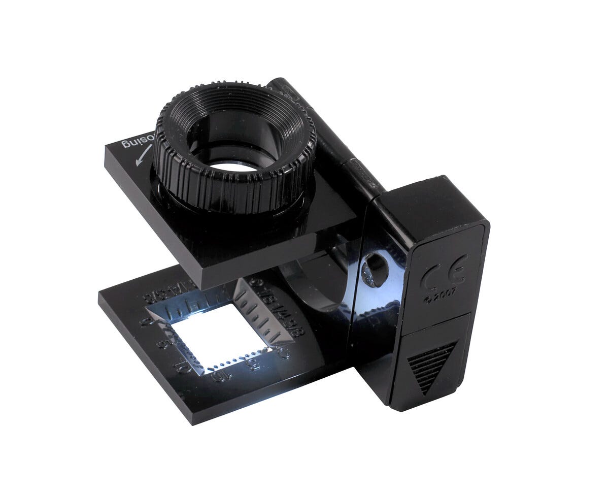 • Forstørrelsesglass i en liten, sammenleggbar lommemodell.