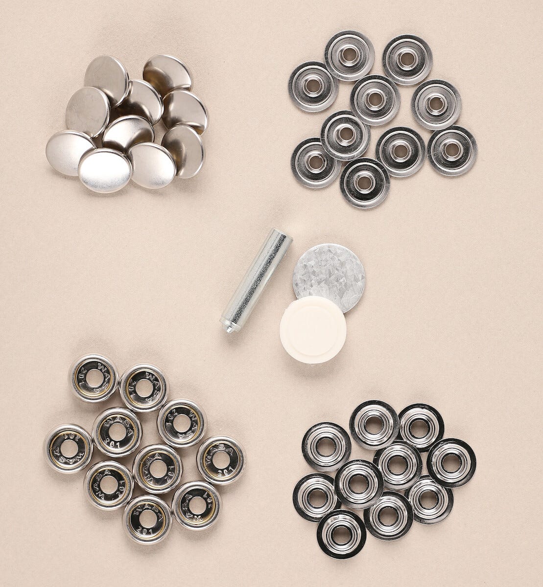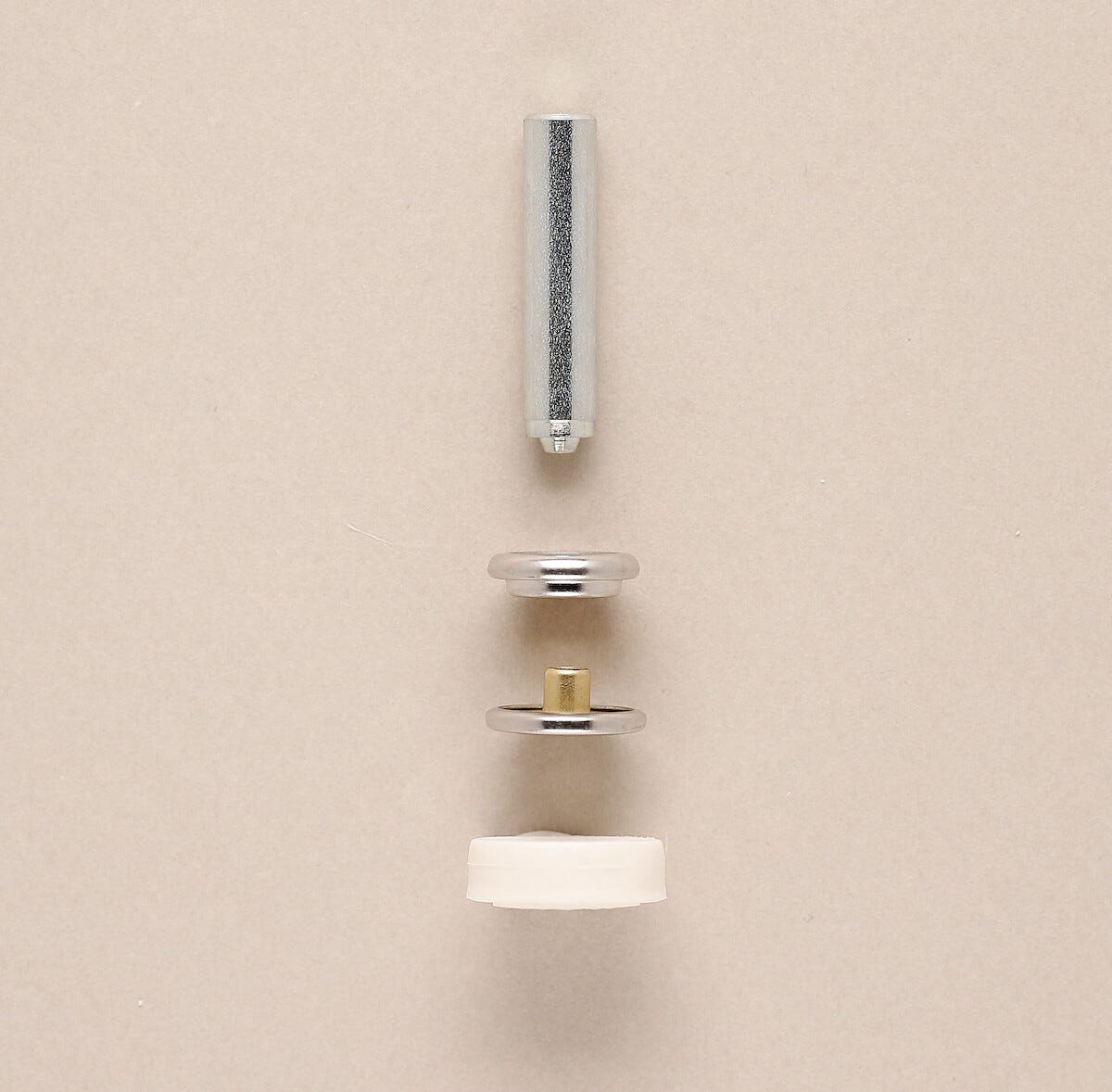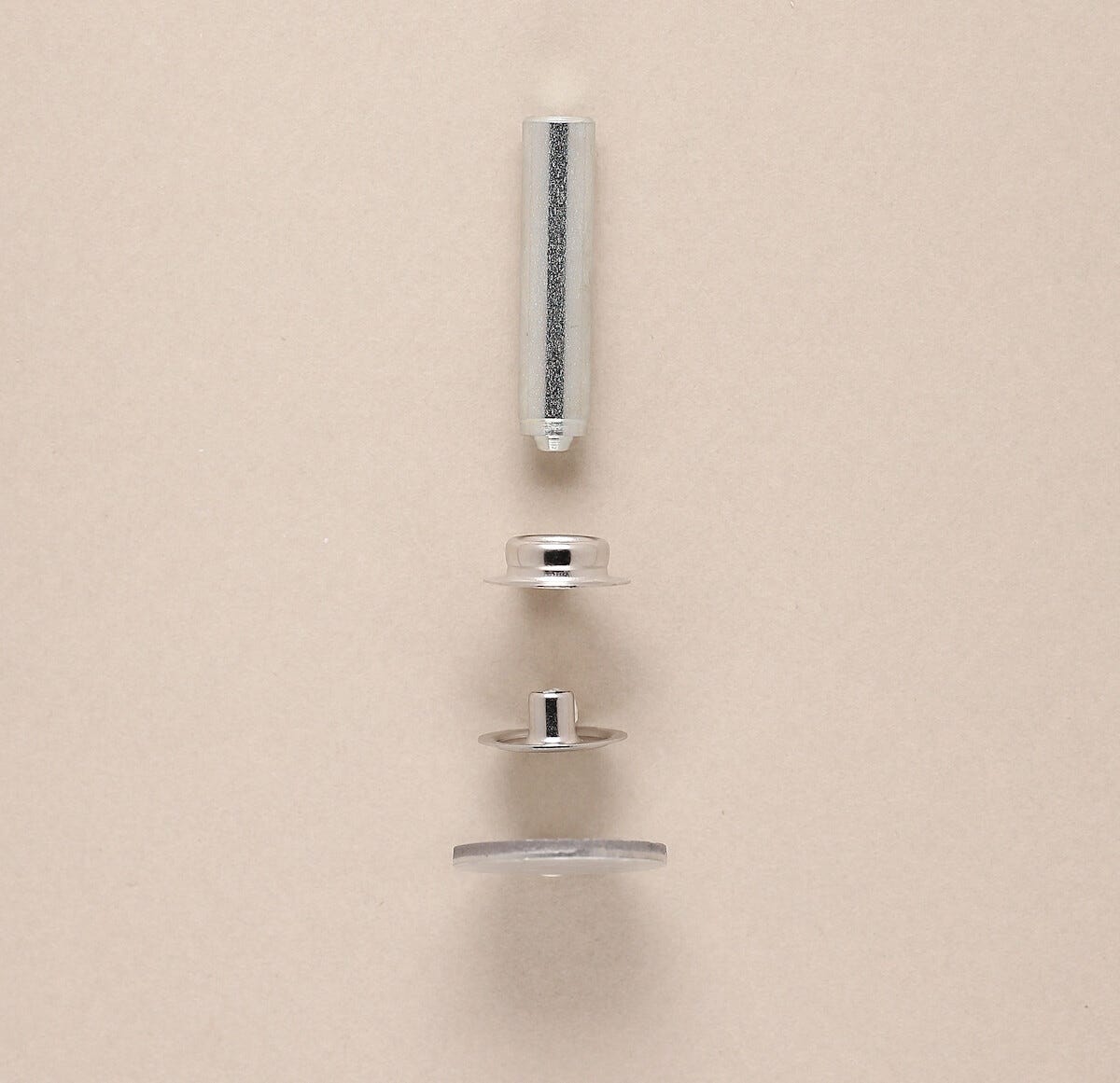 • Stanse og 10 stk. blanke trykknapper i messing.