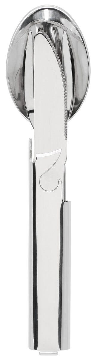• Allsidig sett – kniv, gaffel, skje samt flaske- og hermetikkåpner i ett.