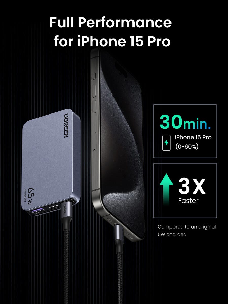 • Ugreen Nexode Pro 65 W GaN travel charger Ultra Slim reiselader.