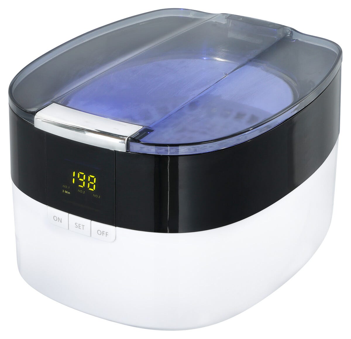 • Stillegående 55 W ultralydvasker med 5 forhåndsinnstilte programmer og blå belysning.