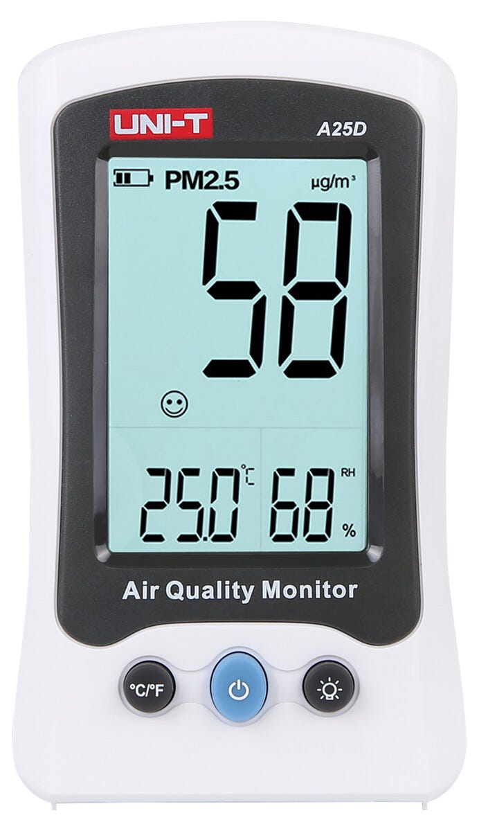 • Uni-T A25D – luftkvalitetsmåler med tydelig visning med emojier.