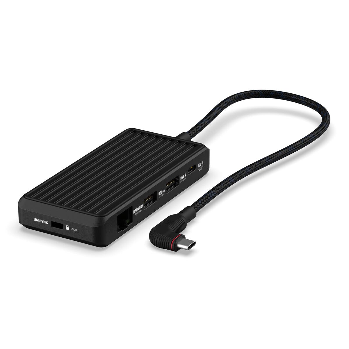 • Unisynk USB-C hub med 8 porter for HDMI, USB og nettverk etc.