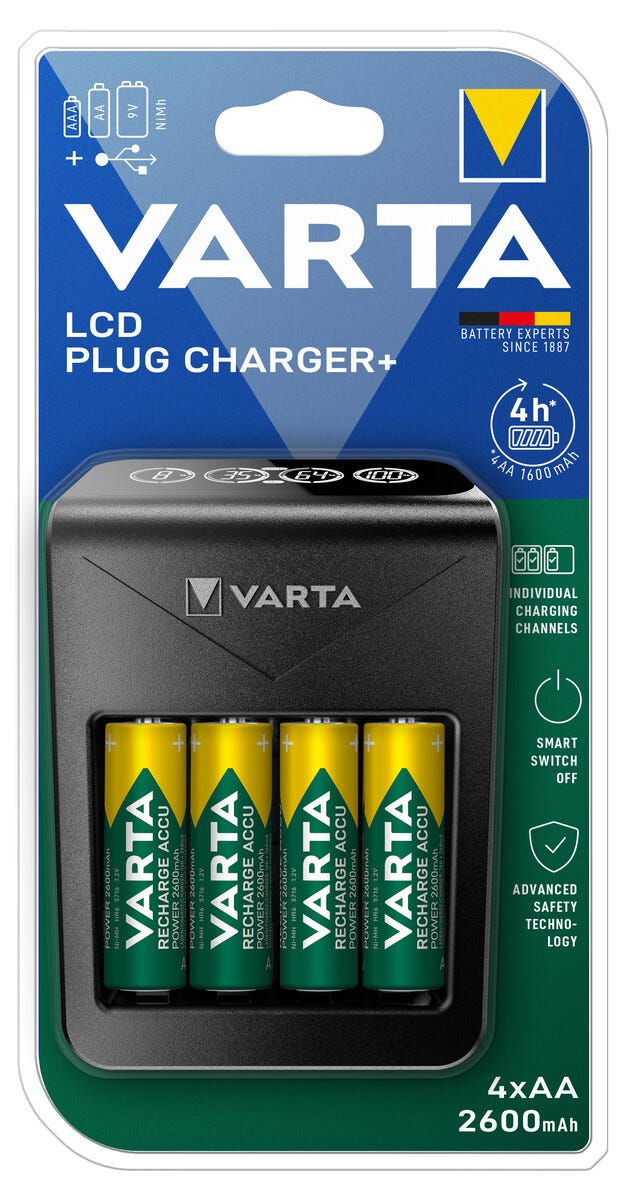 • VARTA LCD Plug Charger+ – bruk batteriene igjen og igjen.
