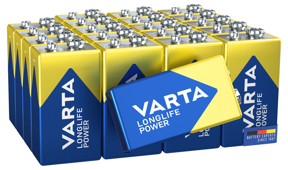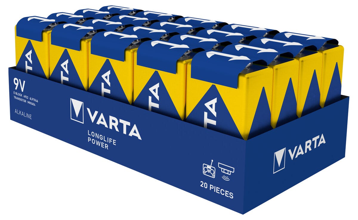 • Varta 9 V-batteri til brannvarslere, radioer og måleinstrumenter.