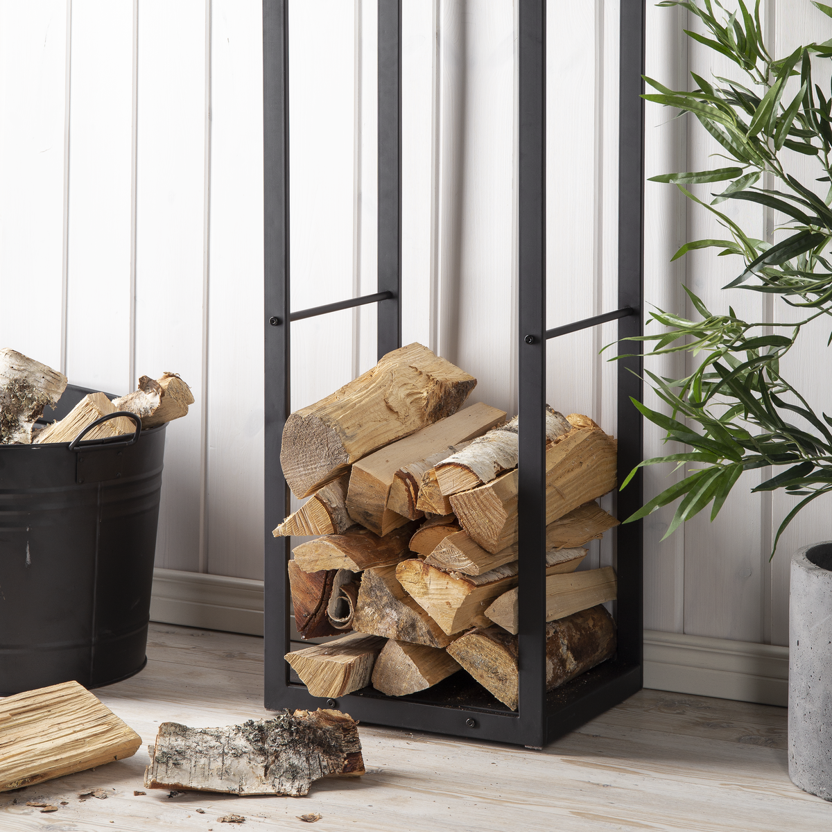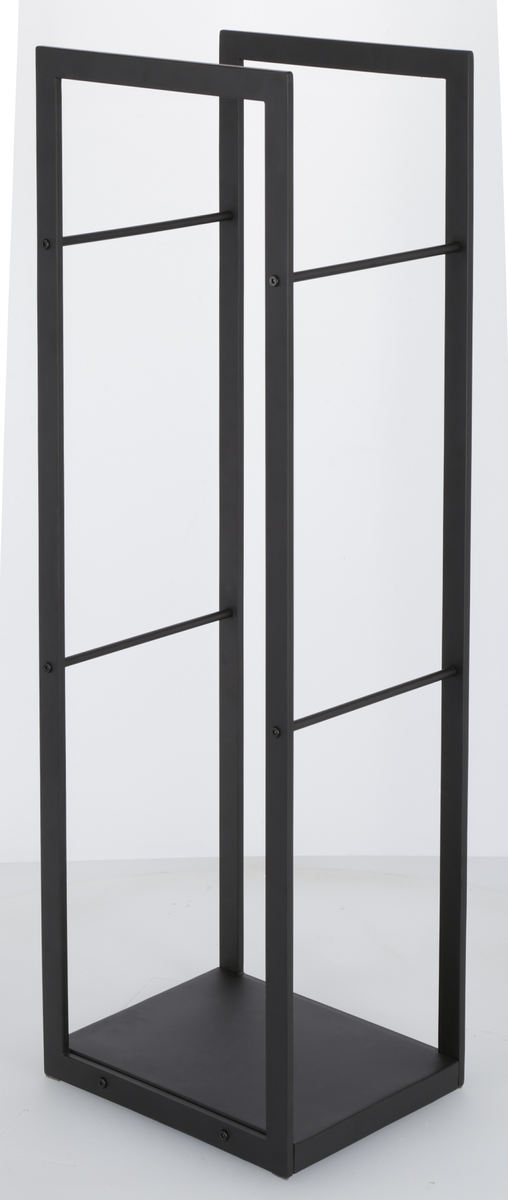 • Romslig og stabil vedstabler med en hel bunnplate i svartlakkert stål.