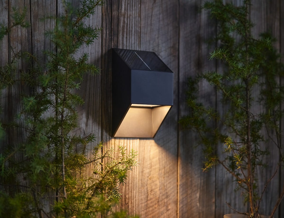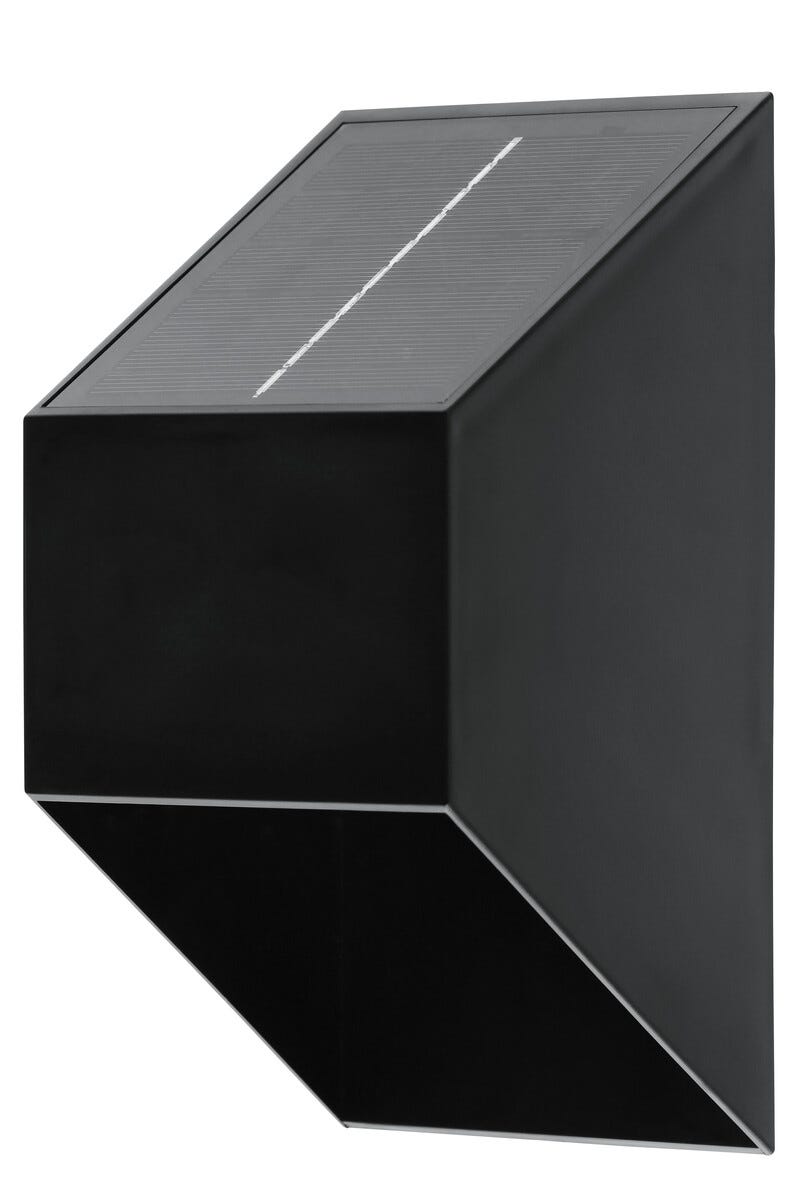 • Robust solcelledrevet vegglampe med lys som vender nedover.