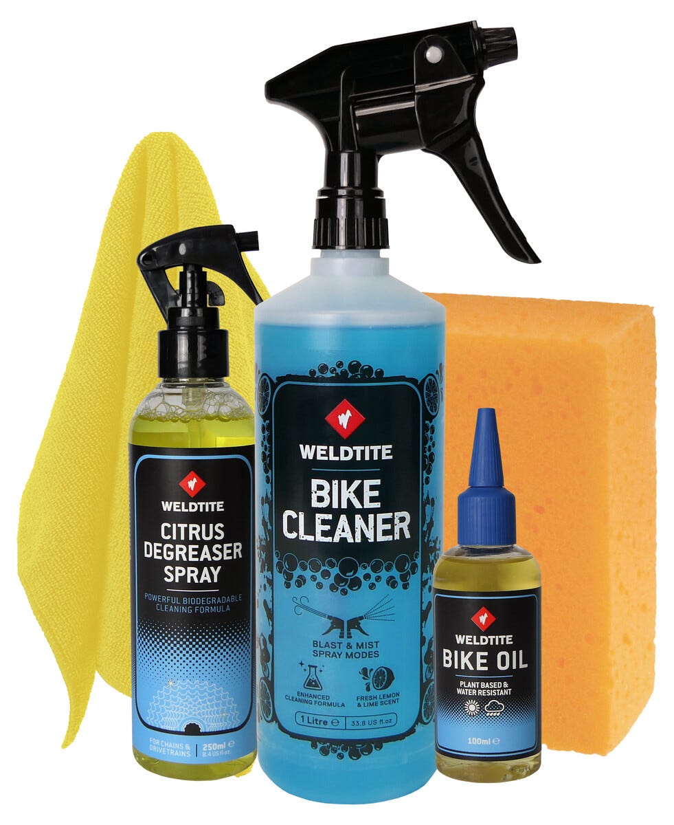 • Weldtite Bike Care Kit sykkelrengjøring – biologisk nedbrytbare rengjøringsmidler.