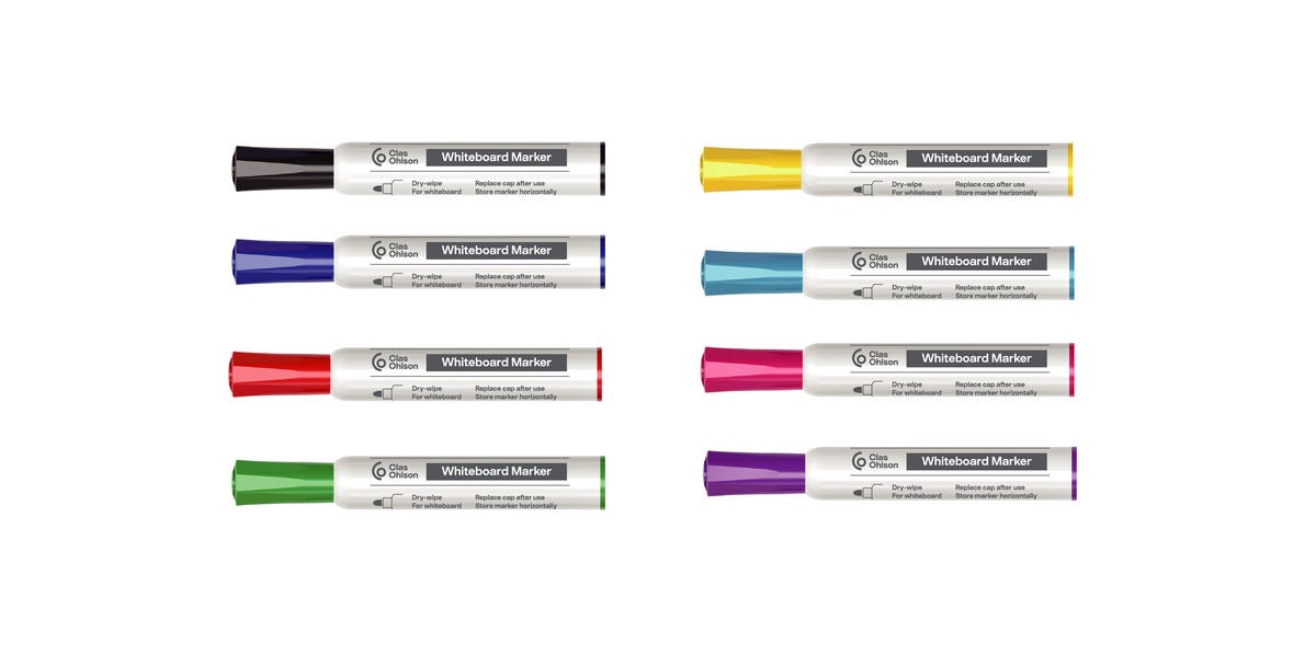 • Skriv tydelig og fargerikt på whiteboardtavler – whiteboardtusjer i 8 farger.