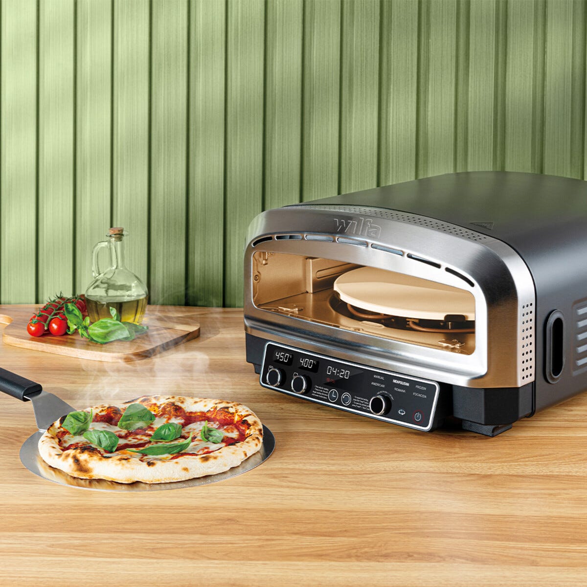 • Romslig 20 liters pizzaovn med rask oppvarming (kun 15 minutter).