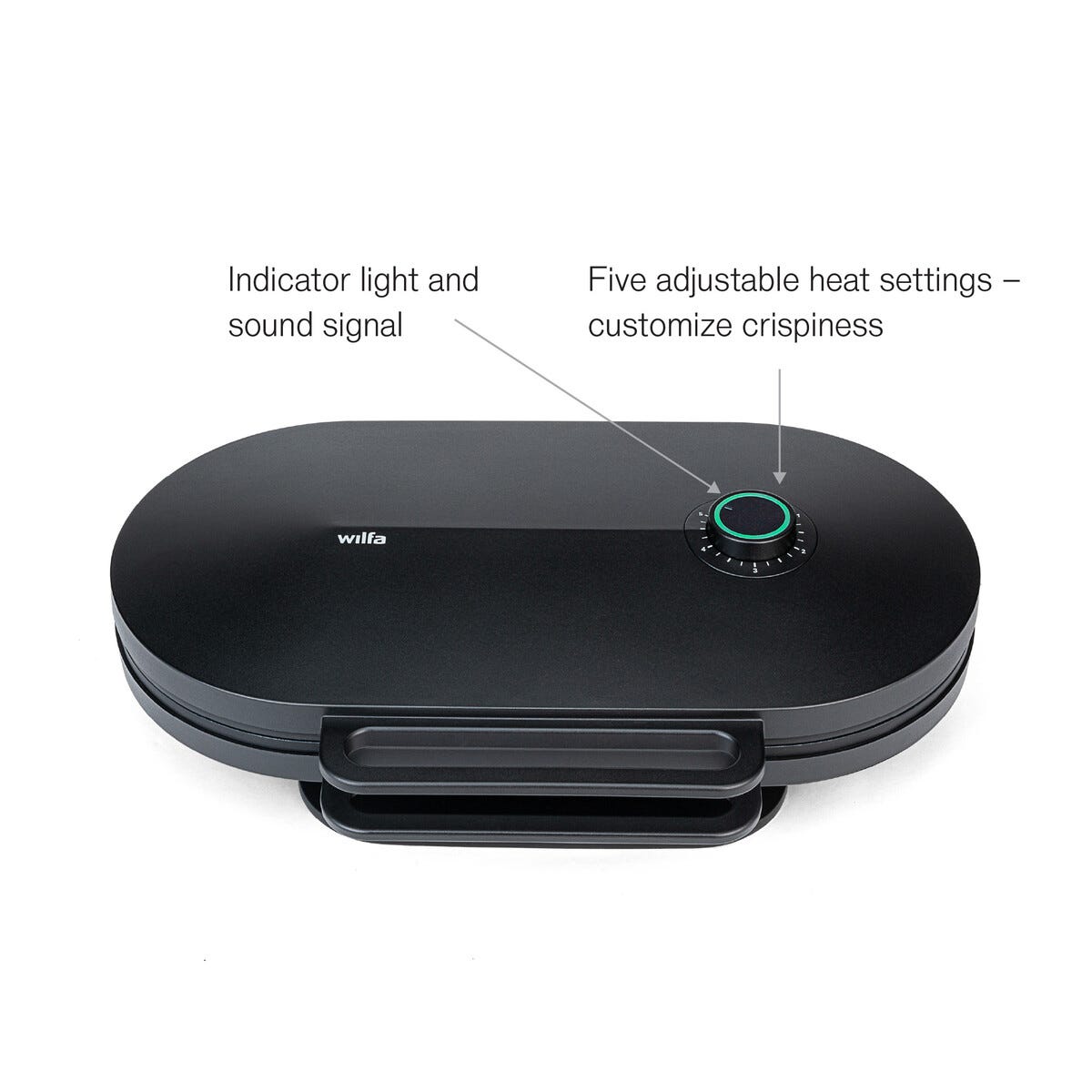 • Wilfa WM6DB-220 dobbelt vaffeljern i stilren, matt svart design.