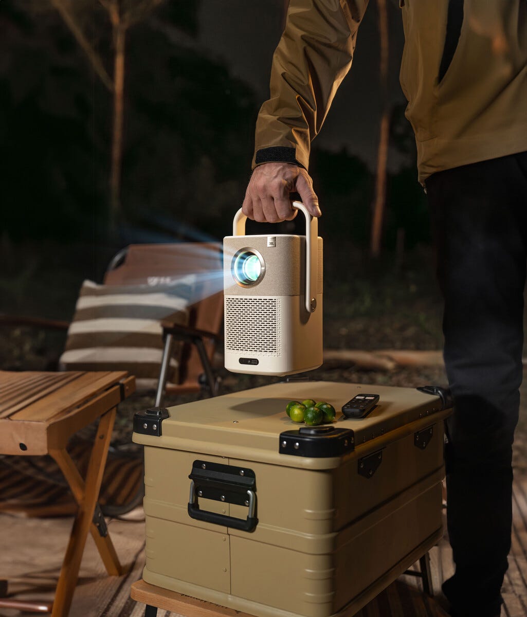 • Bærbar projektor med skarp Full HD, JBL-lyd og innebygd batteri.