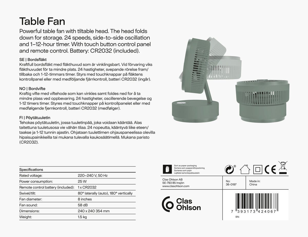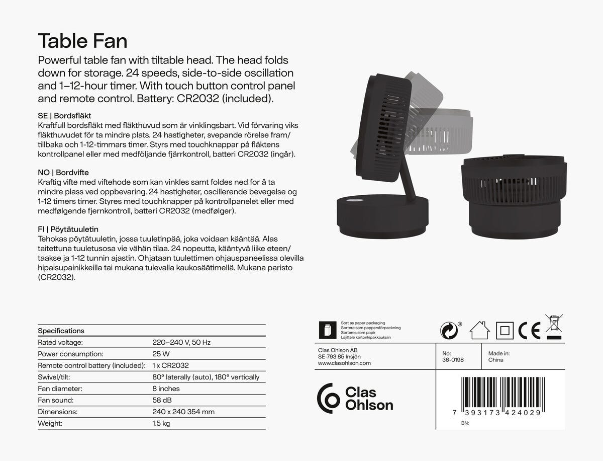 • Sammenleggbar vifte – sett den opp ved bruk og legg den sammen ved oppbevaring.