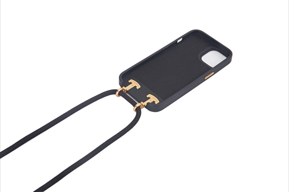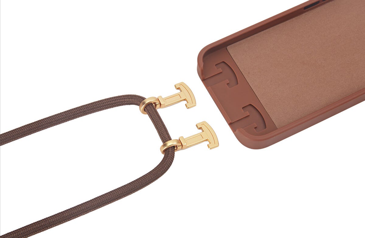 • Crossbody-mobildeksel med justerbar skulderreim – hold hendene frie og mobilen trygg.