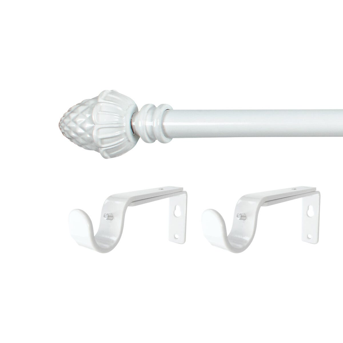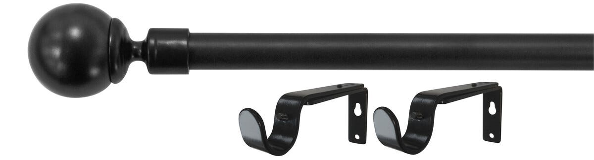 • Komplett sett med gardinstang, endeknopper og veggfester.