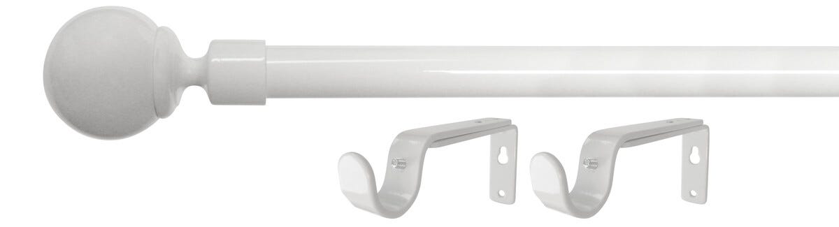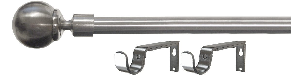 Gardinstang med endeknotter og veggfester, 120–210 cm