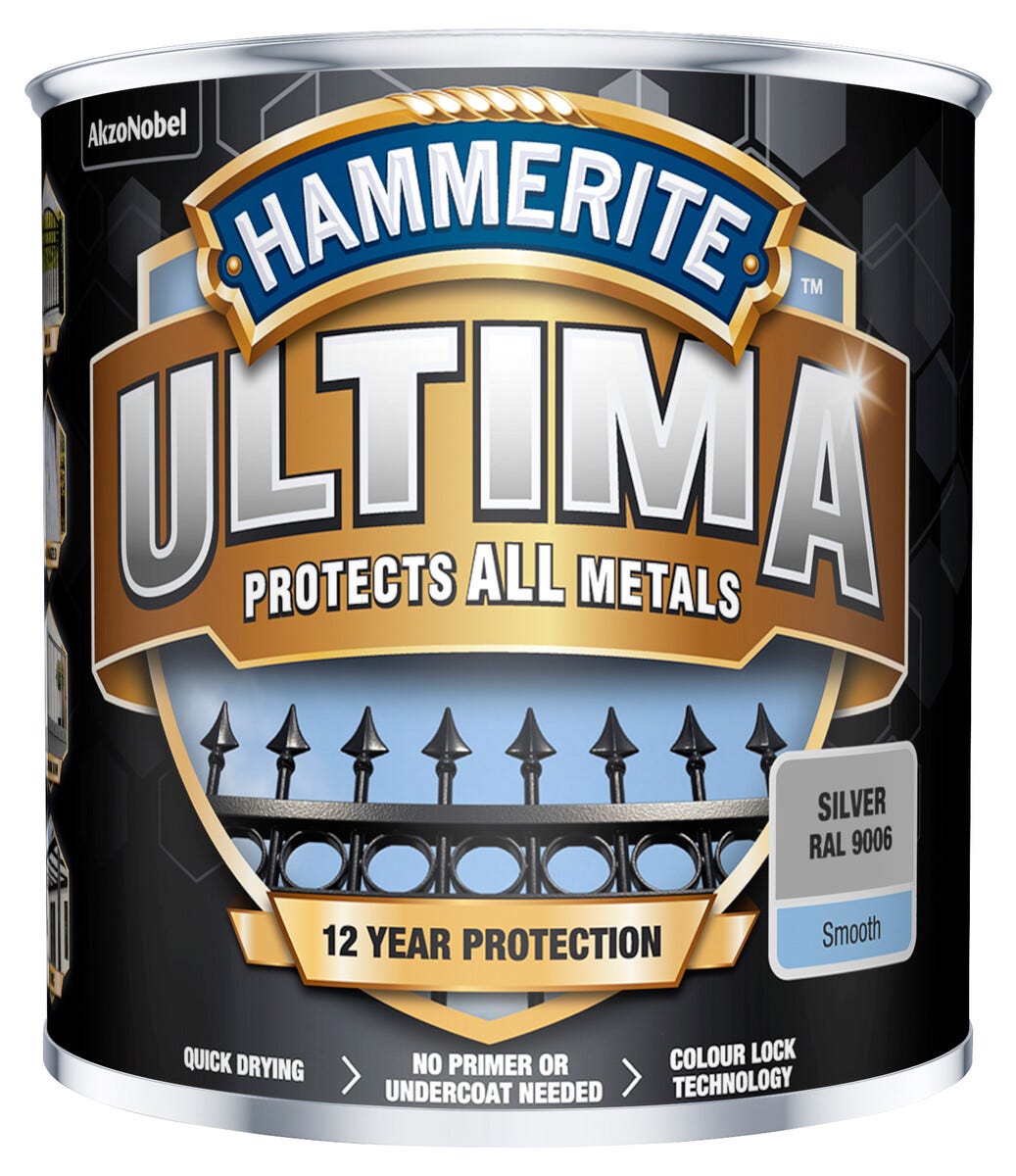 • Hammerite Ultima glatt lakk – grunning og maling i ett, primer er ikke nødvendig.