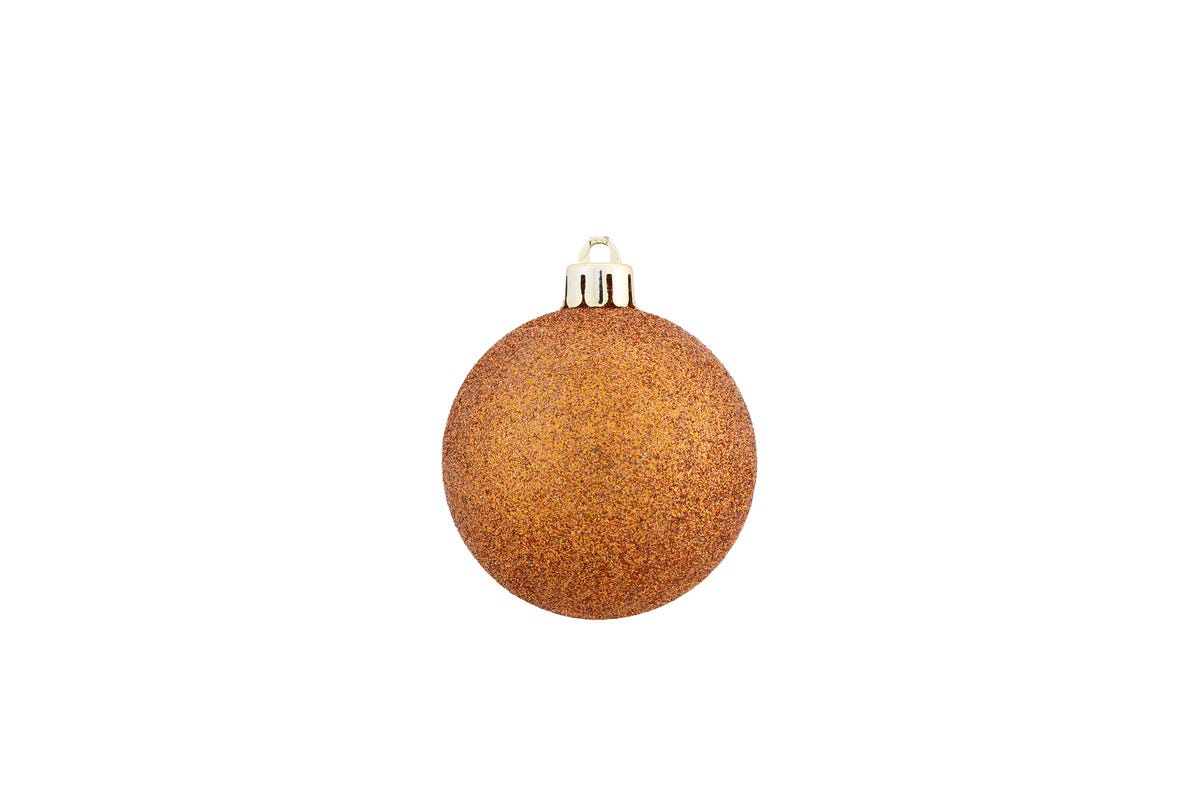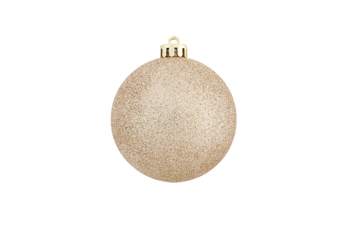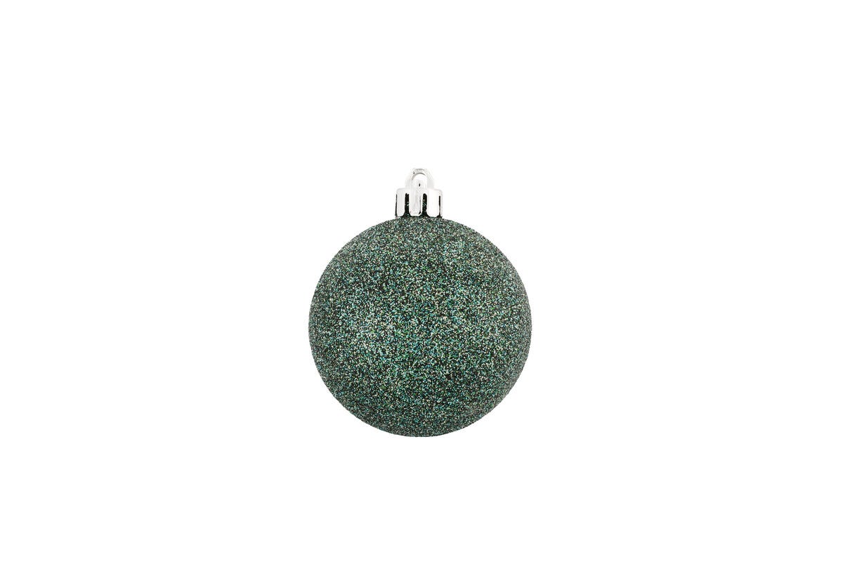 • Blanke, glitrende julekuler i forskjellige størrelser av resirkulerte materialer.