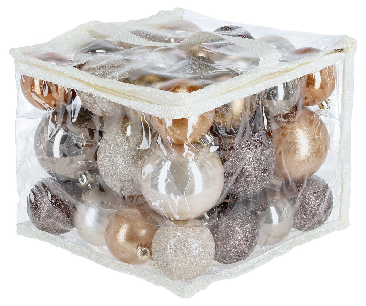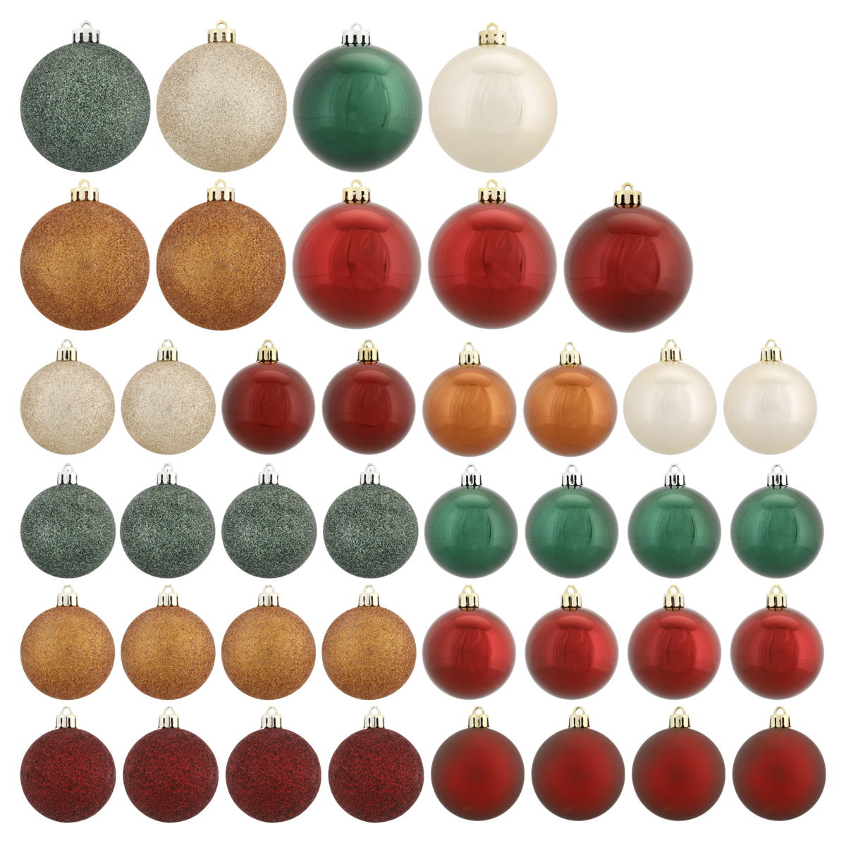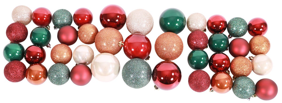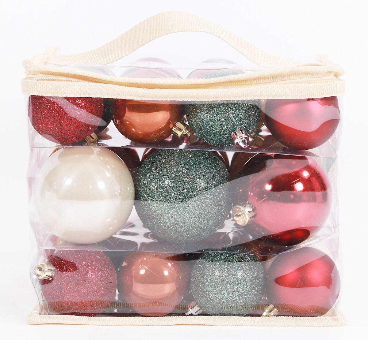 • Stor pakning med julekuler av resirkulert plast og med kroker av metall.