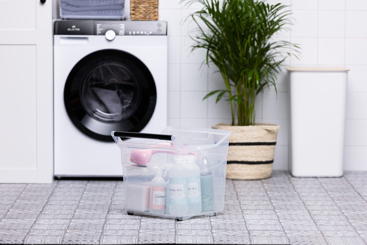 • Oppbevaringsboks i transparent plast for oversiktlig oppbevaring.