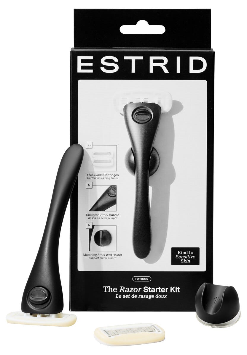 • Estrid startsett med barberhøvel, veggholder og 2 barberblad.