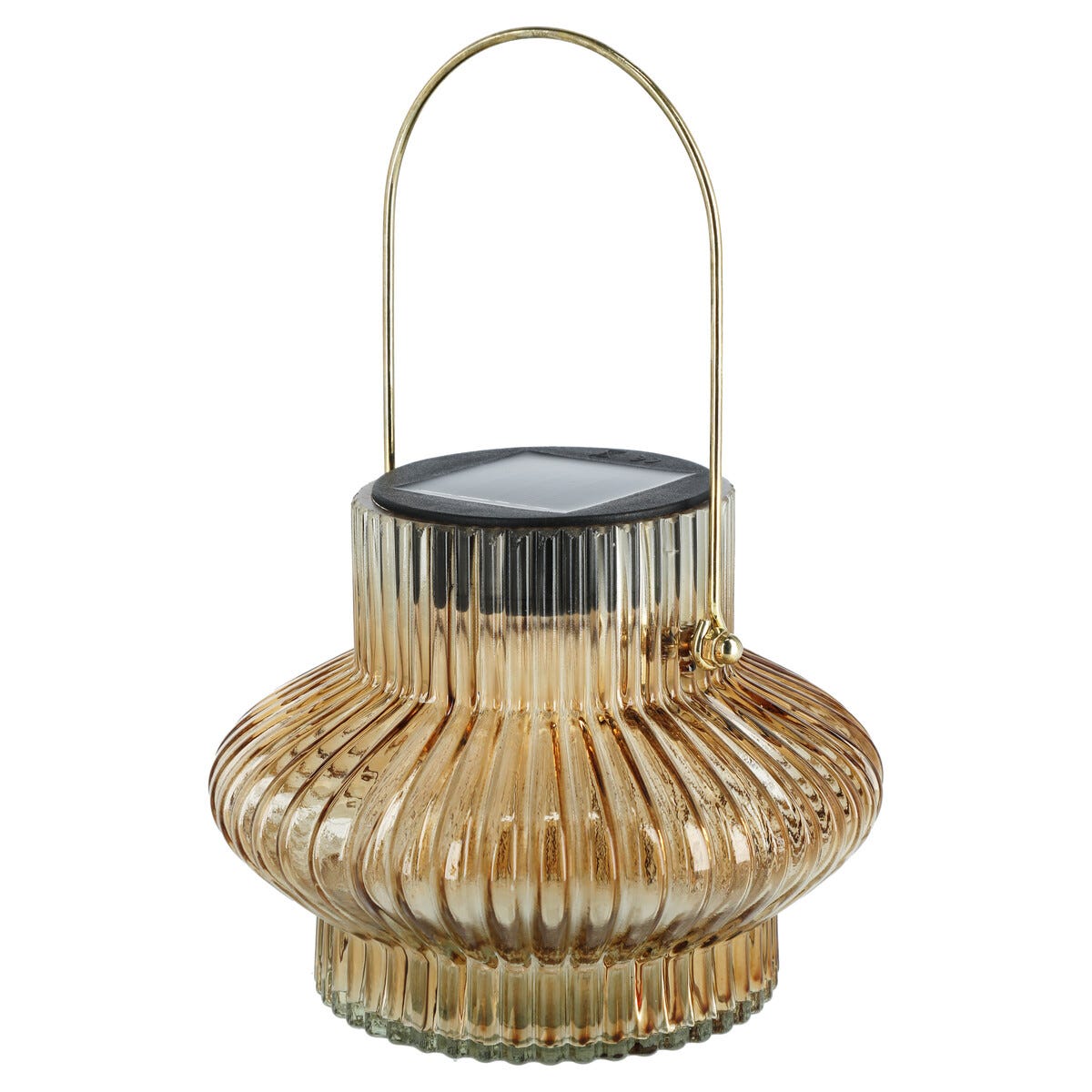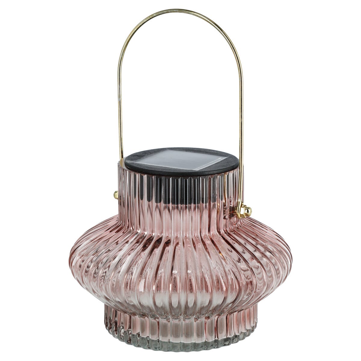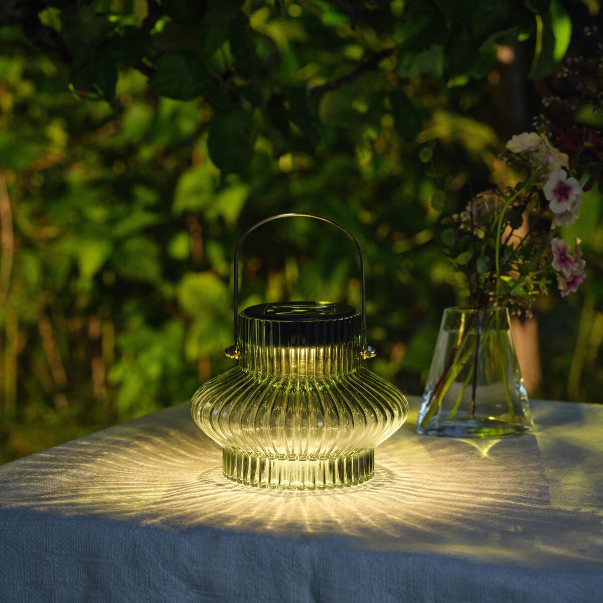 • Lykt med solcelle og foldet glass – sprer et stemningsfullt mønster.