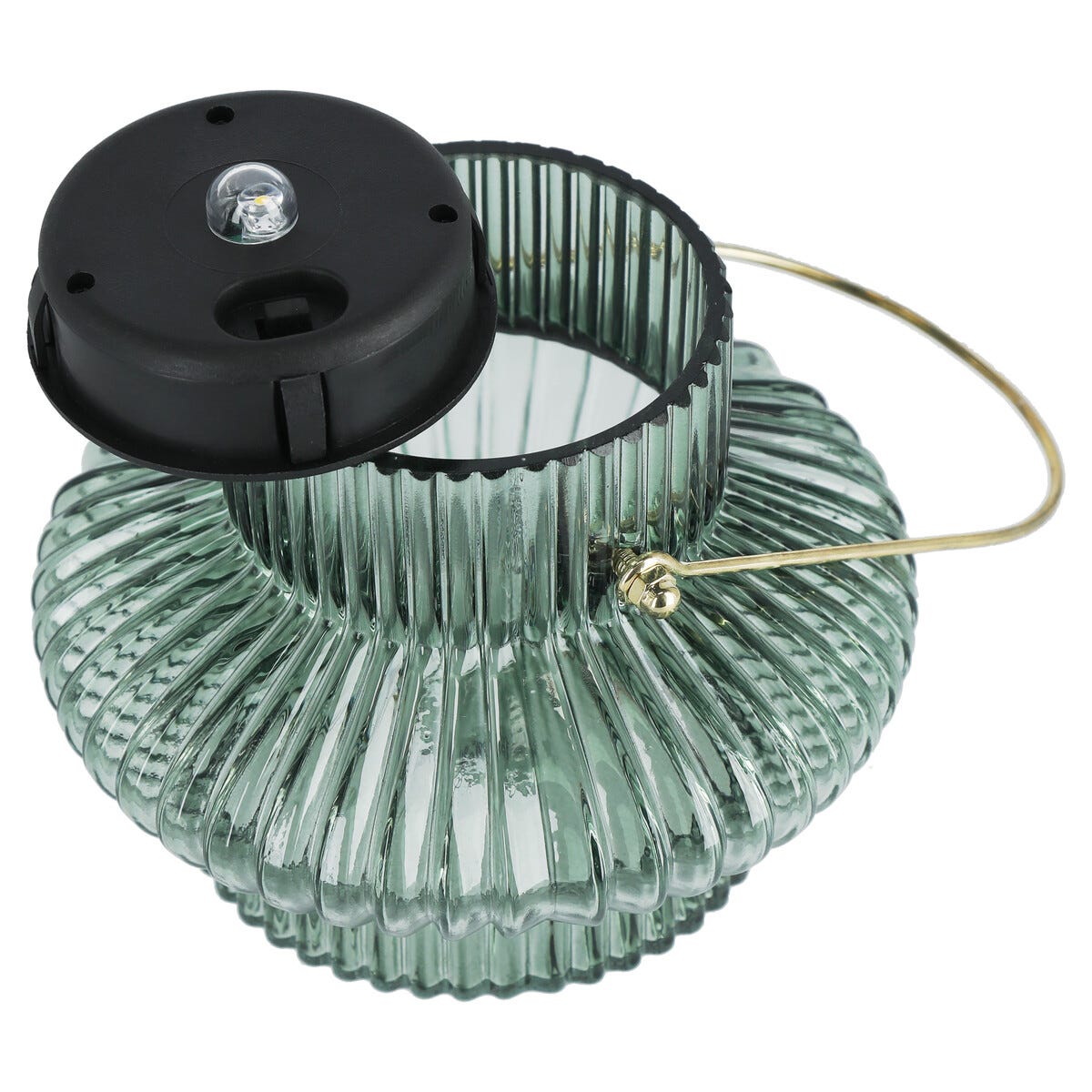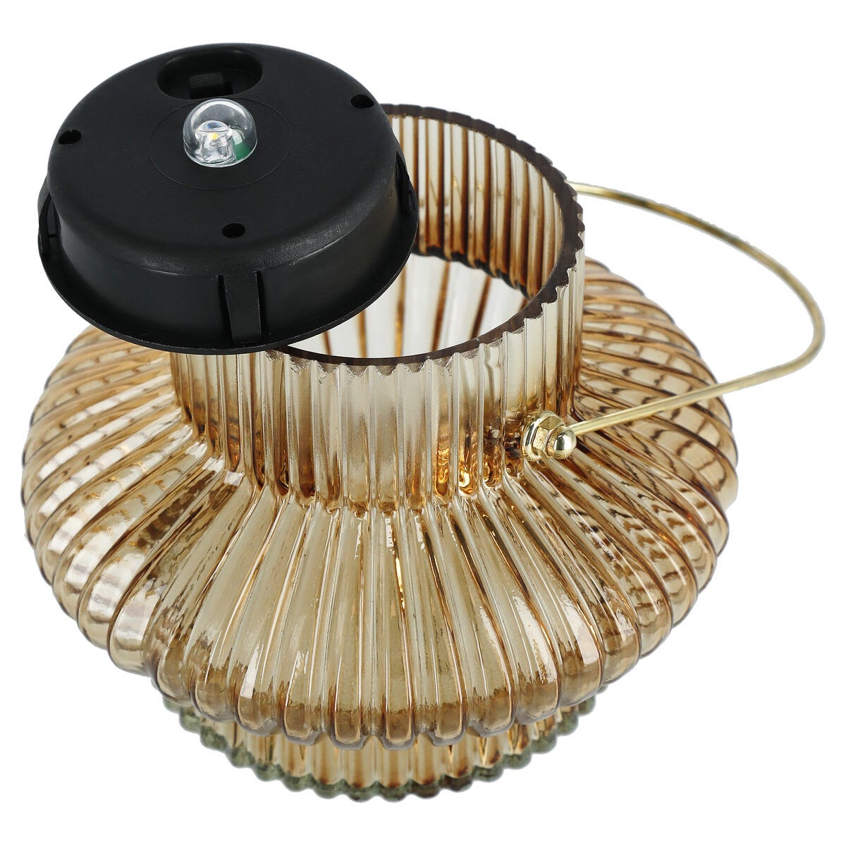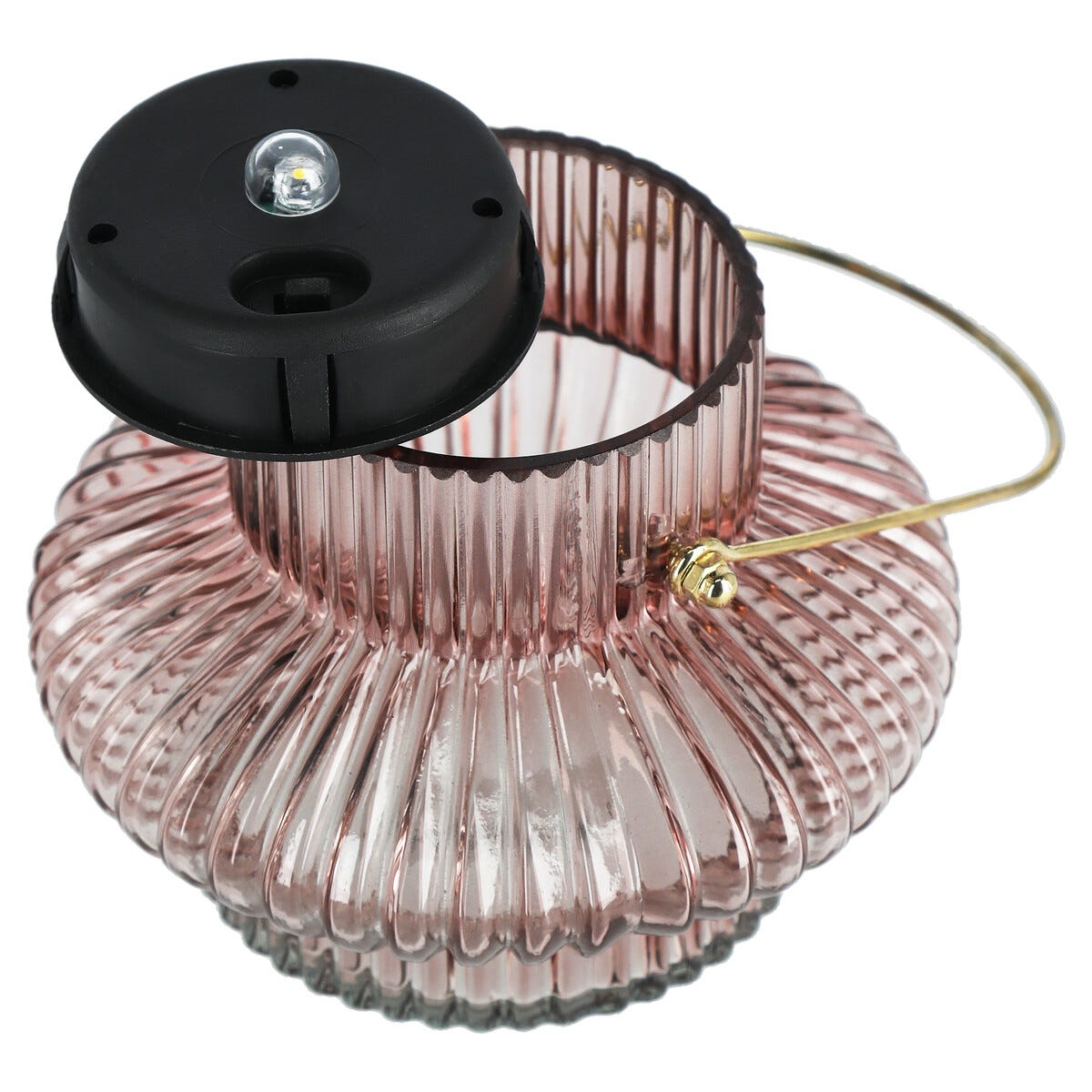 • Lykt med solcelle og foldet glass – sprer et stemningsfullt mønster.