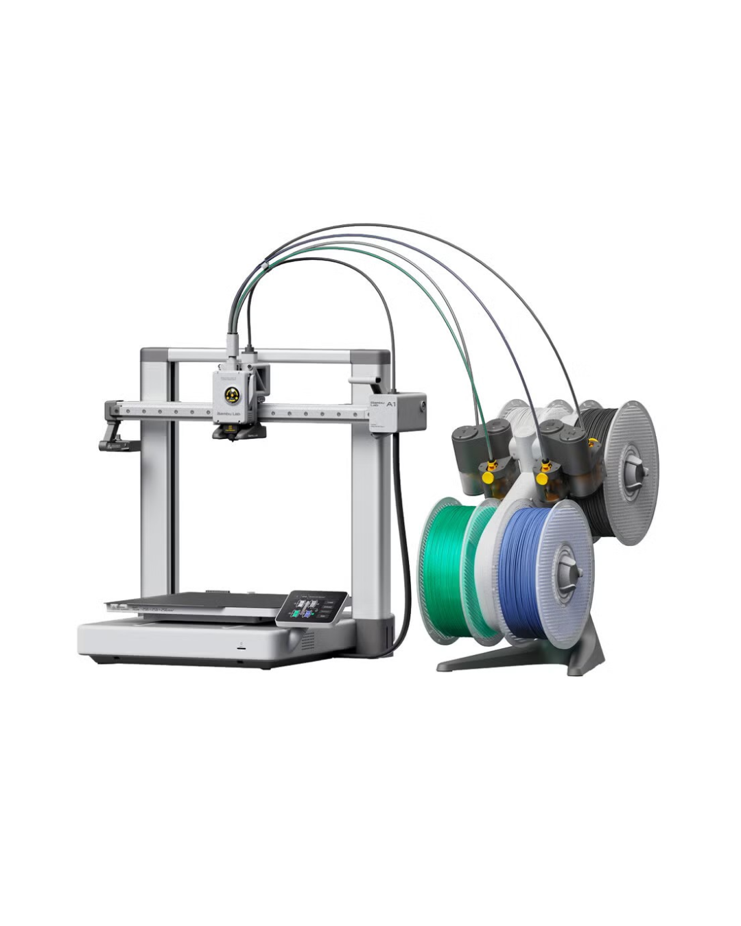 Med AMS kan skrivaren automatiskt växla mellan upp till fyra filament, vilket gör det enkelt att skriva ut i flera färger eller material i samma utskrift.