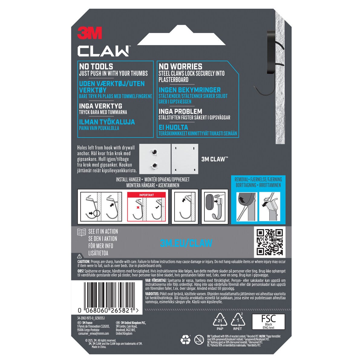 3M Claw krok för gipsvägg svart, 7 kg, 1-pack
