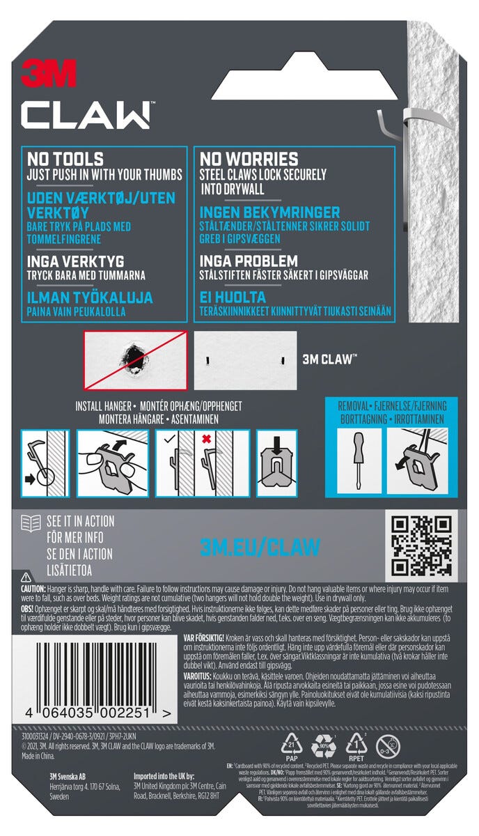• 3M Claw – tavelkrok som låser fast i gipsväggen med stålklor.
