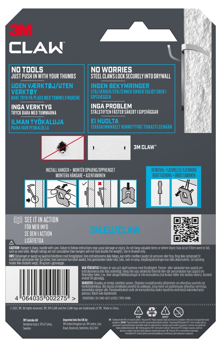 3M Claw tavelkrok för gipsvägg, 7 kg