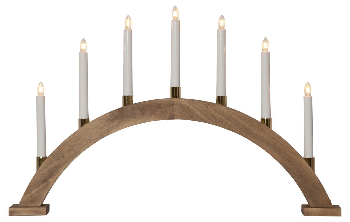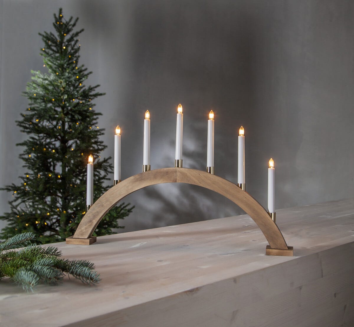 • Trästake med 7 långa ljus som lyser lika fint i fönstret som på en byrå.