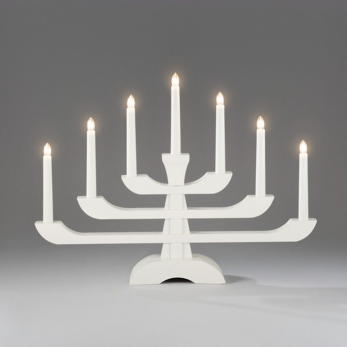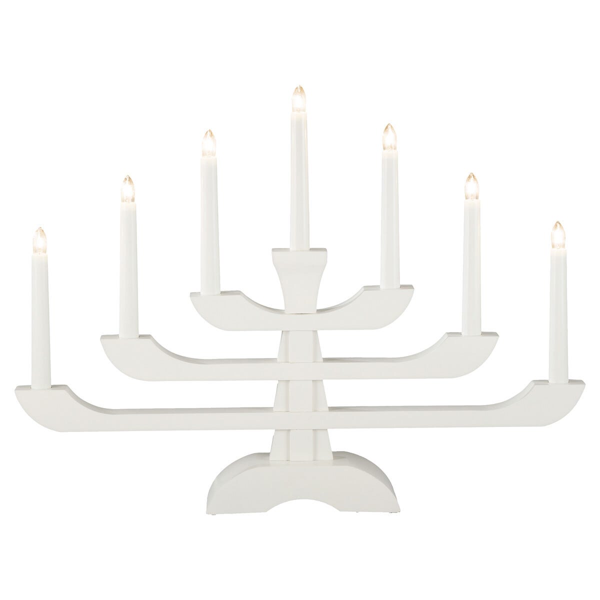 Adventsljusstake LED trä 7-armad, vit, Konstsmide, 33 cm