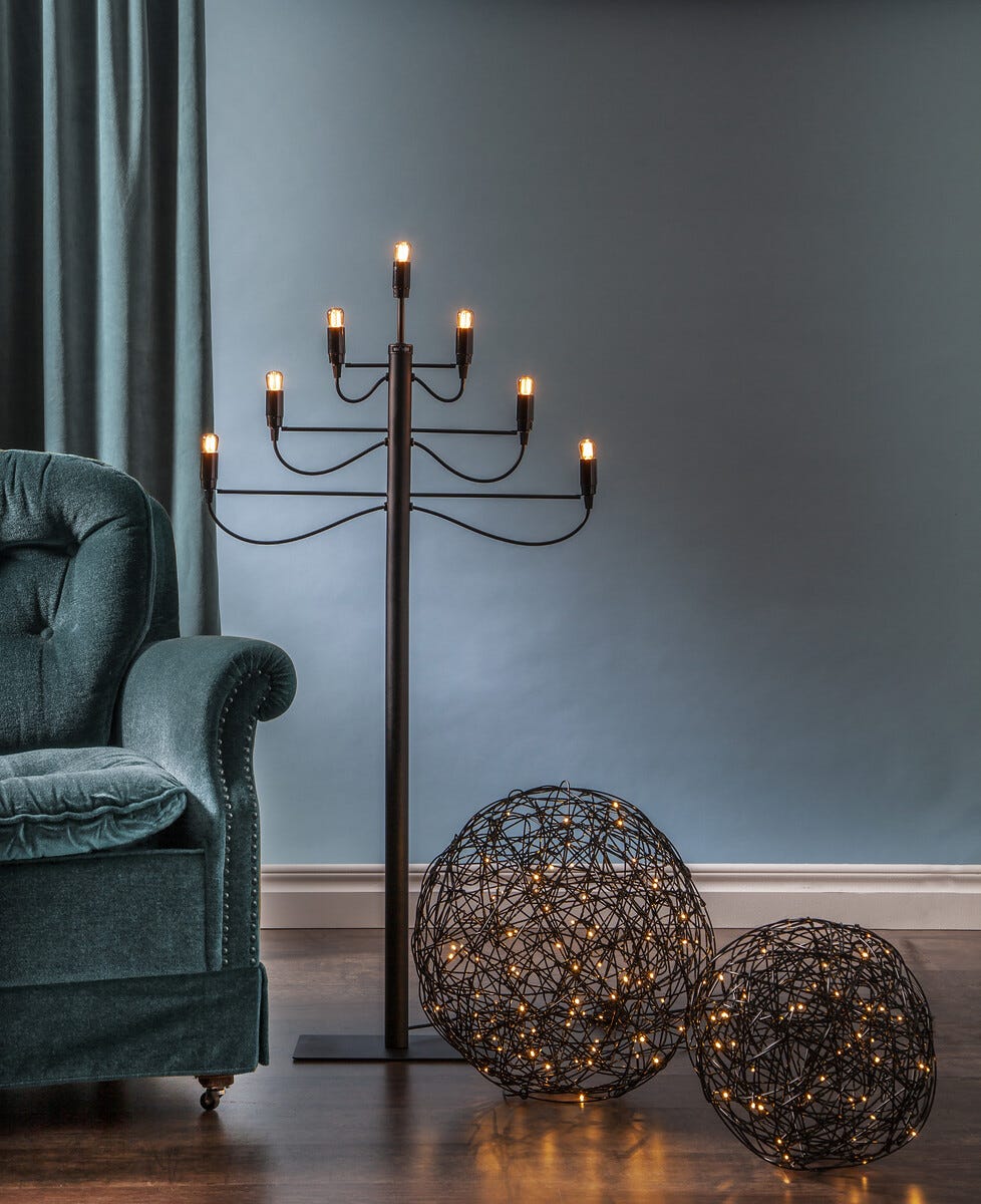 • Adventsljusstake Milano – 7-armad elljusstake i matt svart metall.