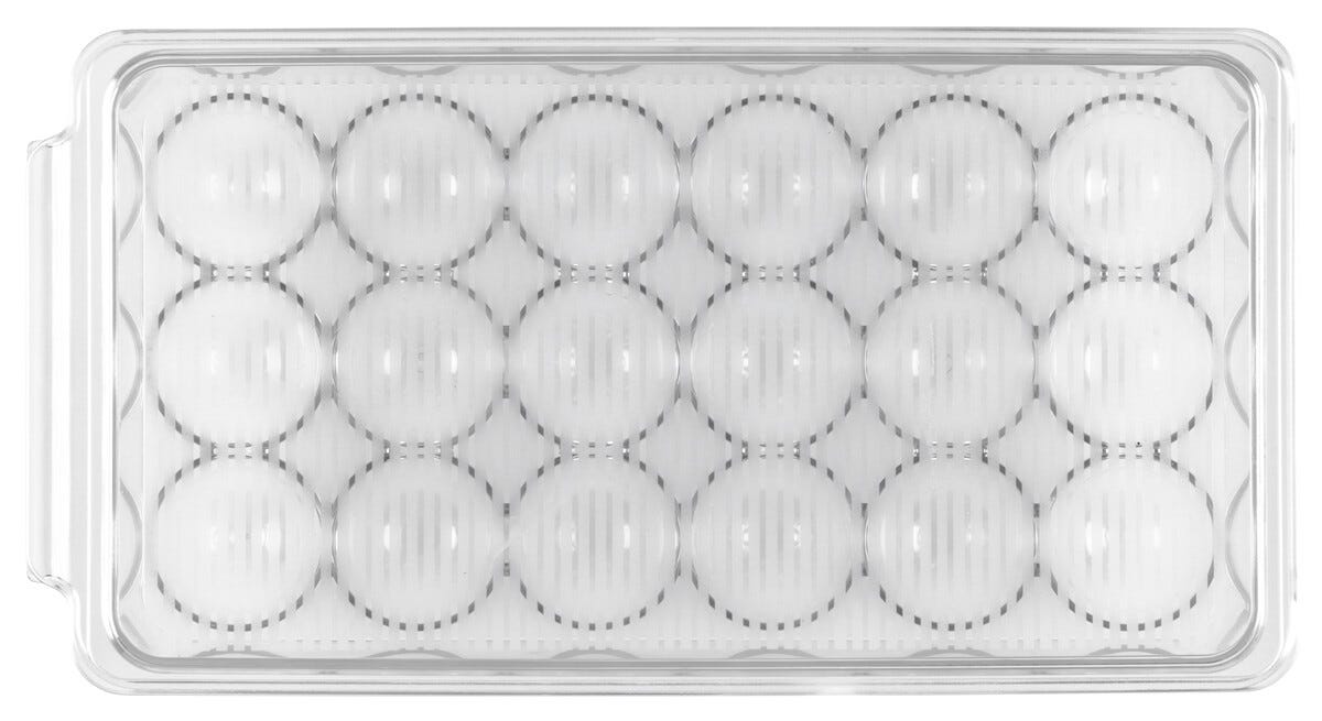 • Plats för 18 normalstora ägg. Mått: 32 x 17 x 17,5 cm.