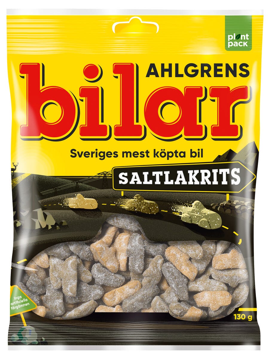 • Saltlakritsbilar med saltsockrad yta för en intensiv smakupplevelse.