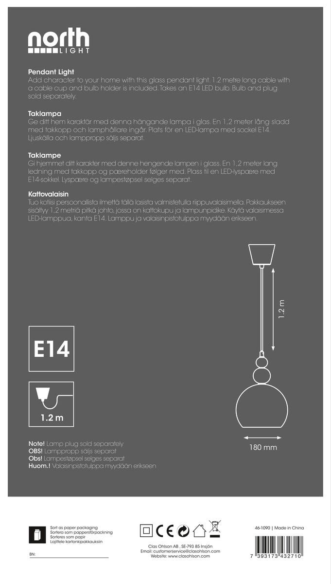 • E14-sockel, max 10 W LED (ljuskälla säljs separat). Diameter: 18 cm. Höjd: 27 cm.