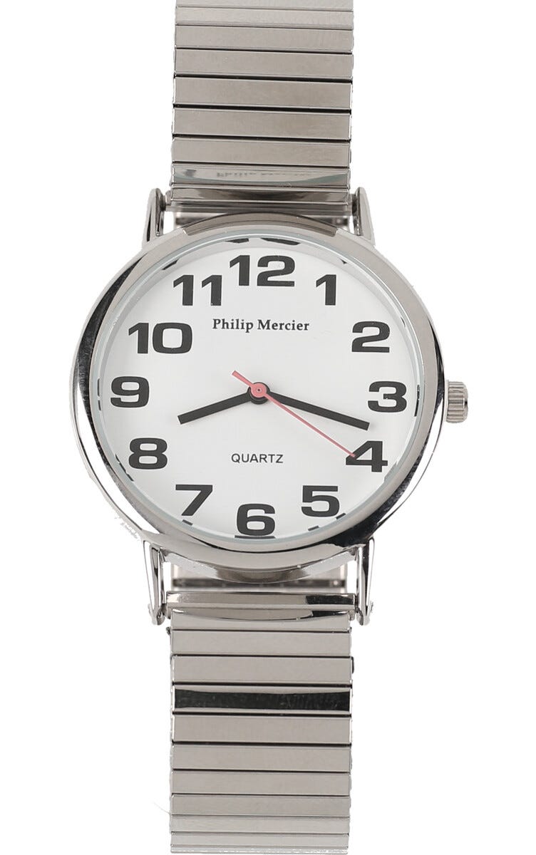 • Elastiskt stålarmband – lätt att ta av och på klockan.