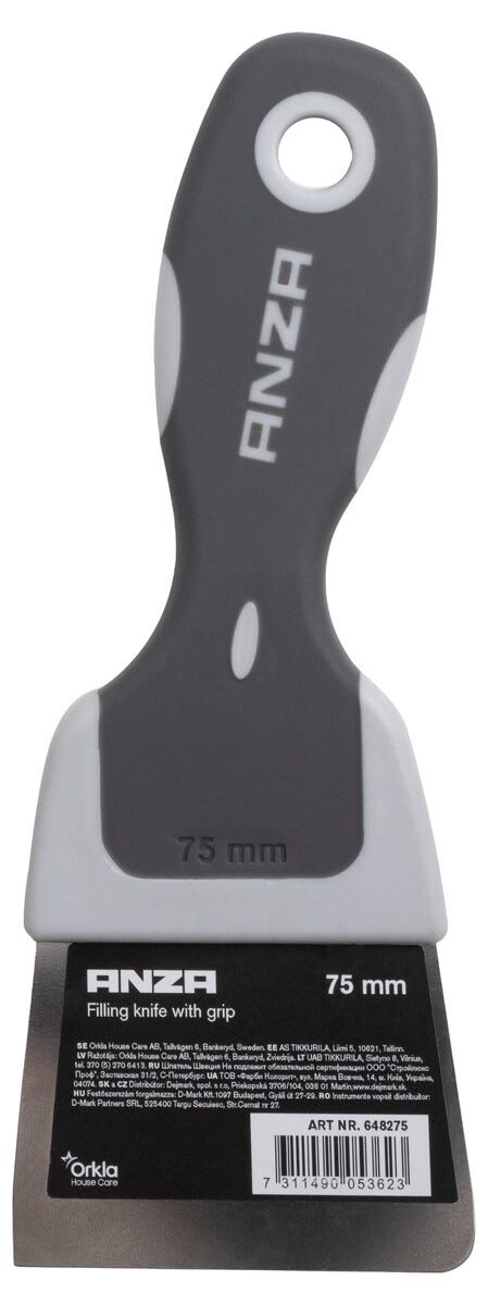 • Anza spackelspade med gummigrepp – finns i flera storlekar.