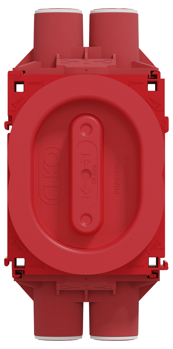 • ELKO Flexi+ 1½-facks – en halogenfri och brandskyddad apparatdosa för försänkta 2-vägsuttag. Apparatdosan har 4 stutsar för 16/20 mm-rör. Avsedd för skivtjocklek: 13 mm. Håltagningsdiameter: 73 mm.
