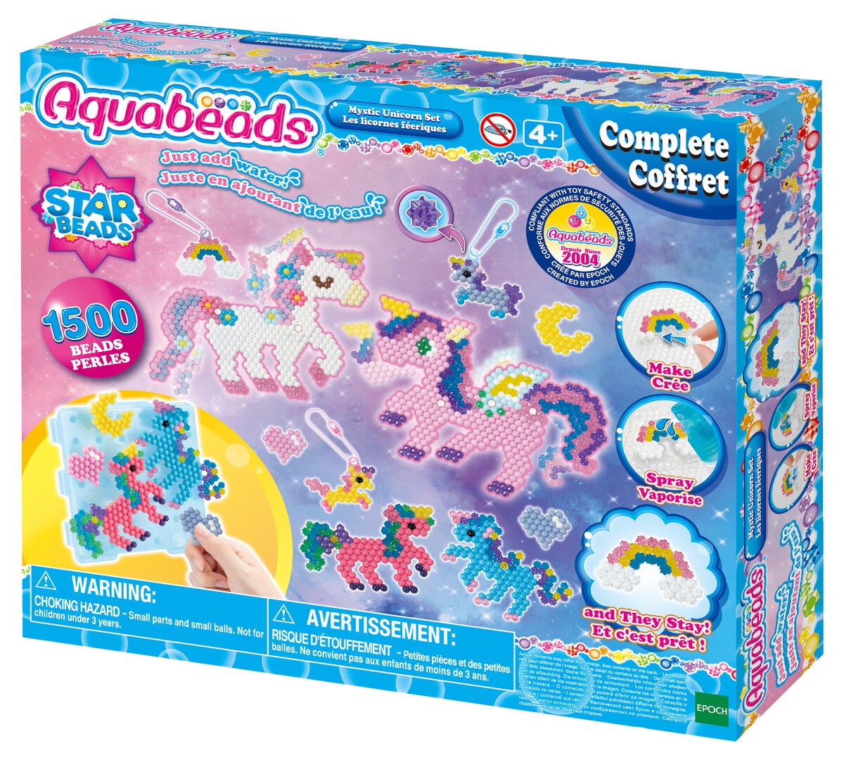 • Skapa färgglada enhörningar med över 1500 vattenpärlor.