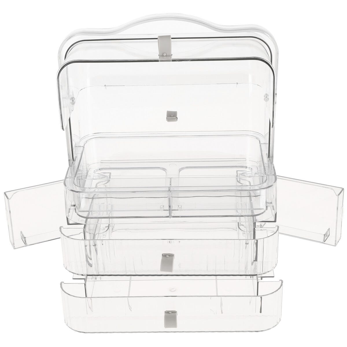 • Sminkförvaring i flera våningar med stora och små utdragbara fack.