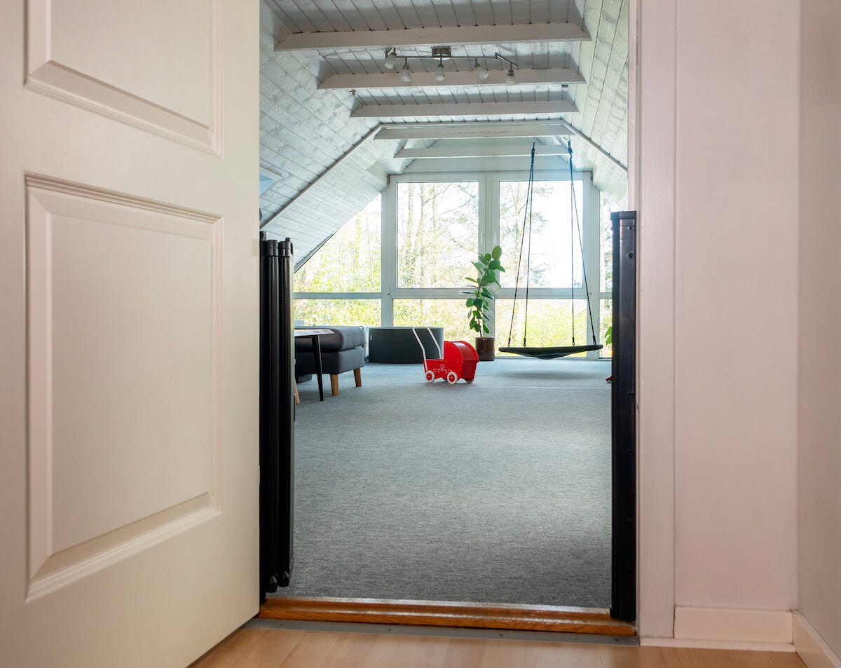 • Barngrinden liten plats öppen – perfekt i trånga dörröppningar.