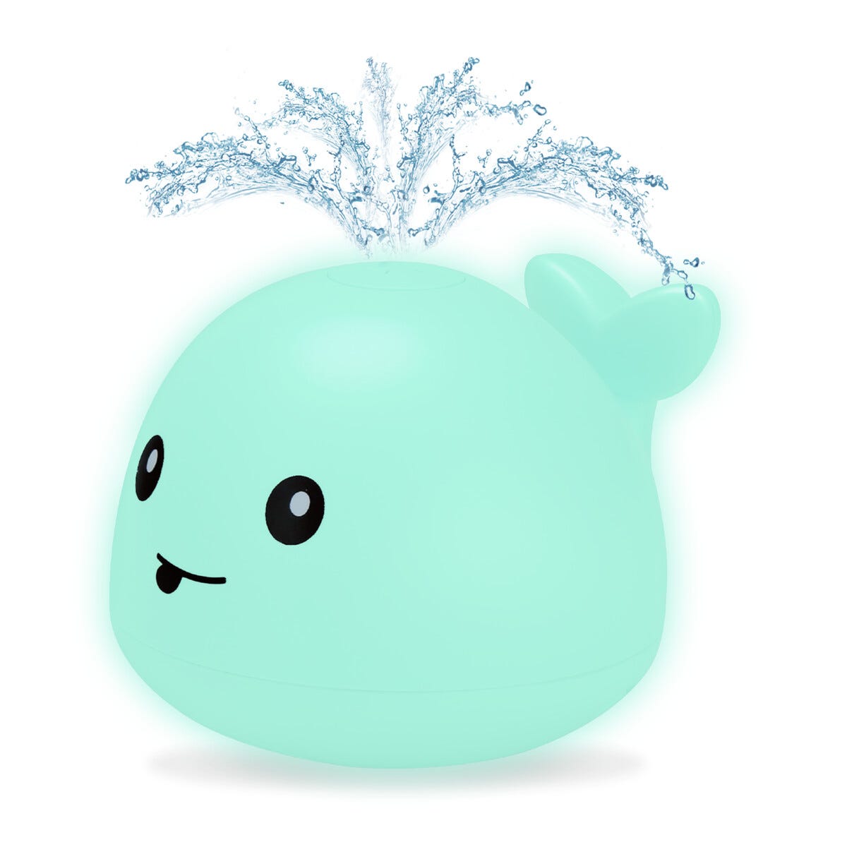 • Lägg valen i badkaret och se den sprudla vatten och lysa upp i olika färger.