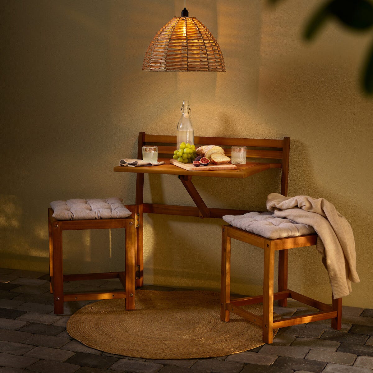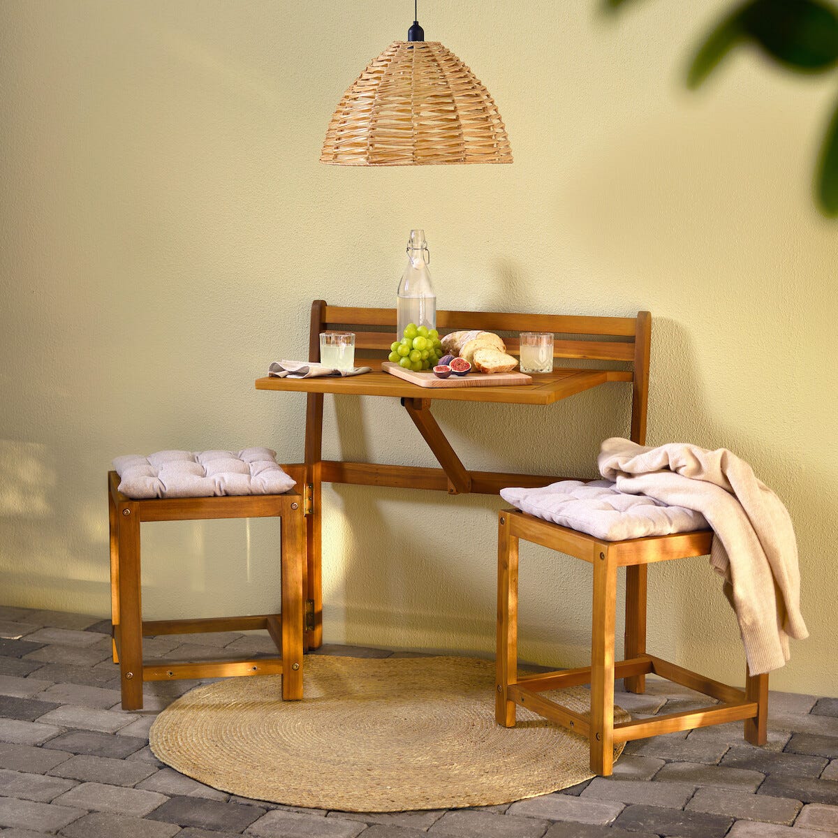 • Bänk och caféset i ett – perfekt på lilla balkongen eller altanen.