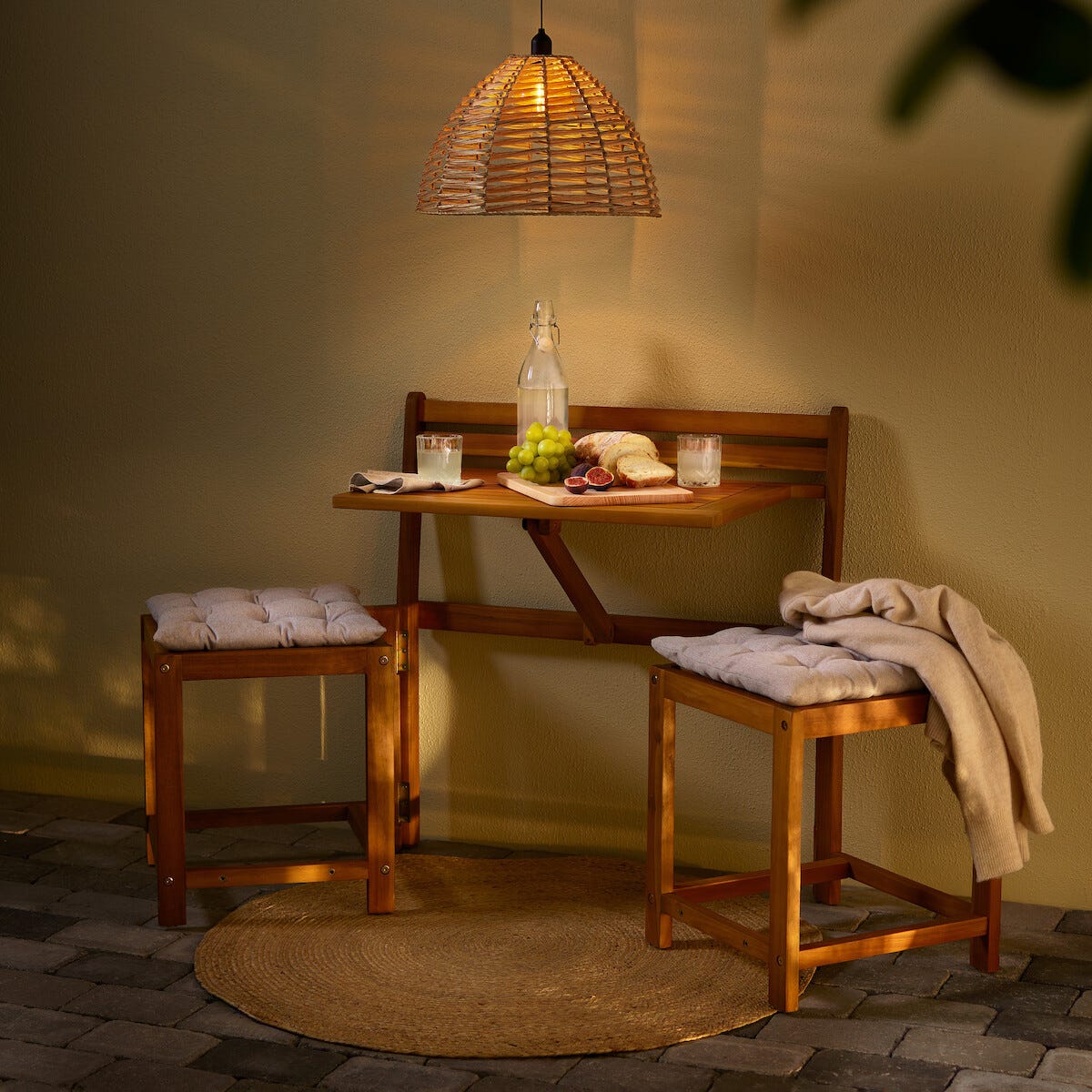 • Bänk och caféset i ett – perfekt på lilla balkongen eller altanen.