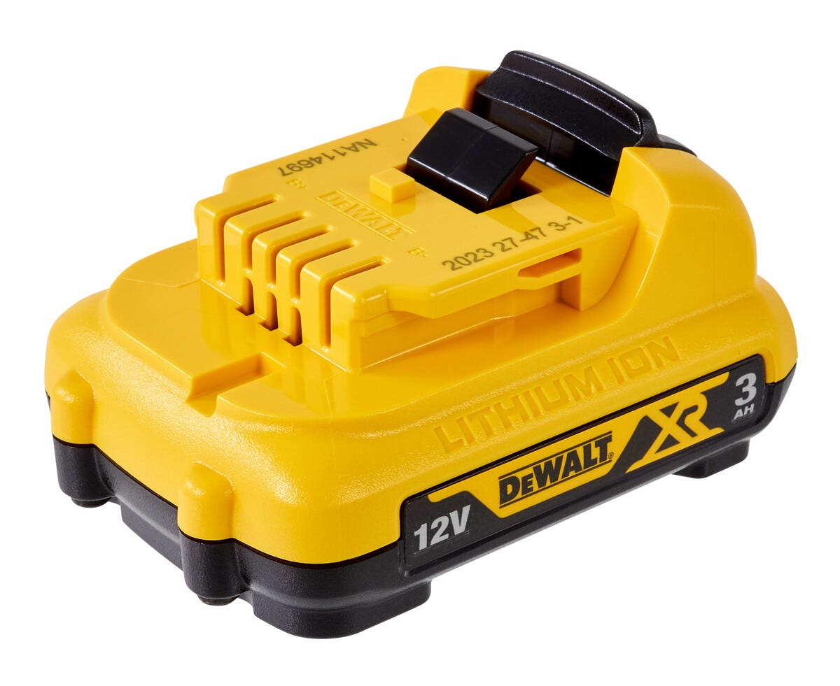 Kompakt batteri på 12 V och 3,0 Ah med LED-laddningsindikator. 50 % längre drifttid än 12V XR 2 Ah-batteriet.